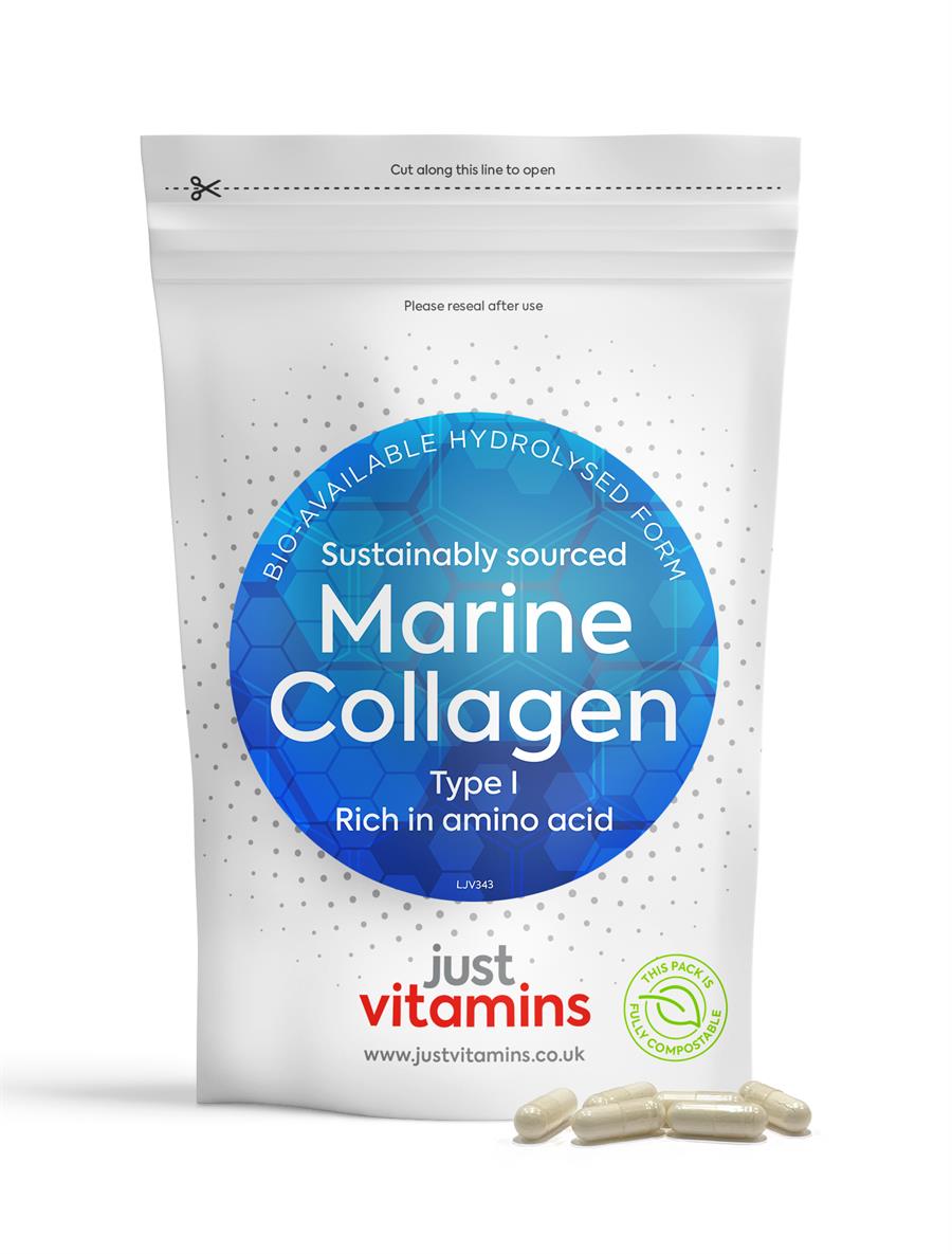 Just Vitamins Collagen capsules are manufactured using hydrolysed, marine-sourced collagen, as opposed to the cheaper and less desirable bovine-sourced collagen. Our collagen is encapsulated in a cellulose-based capsule shell, so will be perfectly acceptable to fish-eating vegetarians ('pescatarians'), although Just Vitamins doesn't class this as a truly vegetarian supplement. The collagen in our supplement is produced solely from fish skin and as with all our fish-based supplements, the raw material is from a sustainably managed source.