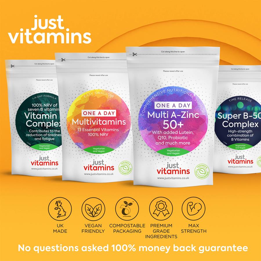 Calcium Carbonate with Maltodextrin, Bulking Agent (Microcrystalline Cellulose), Magnesium Oxide, Vitamin C (Ascorbic Acid, Hydroxypropyl Methylcellulose), Potassium Chloride, Coating (Calcium Carbonate, Hydroxypropyl Methylcellulose, Isomalt, Medium Chain Triglycerides), Vitamin E (DL Alpha Tocopherol Acetate, Modified Corn Starch, Silicon Dioxide), Nicotinamide, Ferrous Fumarate, Calcium D-Pantothenate, Anti-caking Agent (Silicon Dioxide), Zinc Oxide, Anti-caking Agent (Magnesium Stearate), Marigold Extract with Maltodextrin, Beta Carotene Beadlets (Green Algae (Dunaliella Salina) Extract, Gum Arabic), Vitamin A (Maltodextrin, Gum Arabic, Modified Starch, Vitamin A Acetate, DL-Alpha Tocopherol), Colour (Caramel), Manganese Sulphate, Green Tea 10:1 Leaf Extract, Vegan Vitamin D3 (Corn Syrup, Arabic Gum, Cholecalciferol Oil (Lichen Extract, Fractionated Coconut Oil, D-Alpha Tocopherol), Silicon Dioxide, Sodium Ascorbate), Pyridoxine Hydrochloride, Vitamin B12 (Dicalcium Phosphate, Cyanocobalamin), Riboflavin, Thiamine Hydrochloride, Cupric Sulphate Anhydrous, Coenzyme Q10, Vitamin K1 (Maltodextrin, Phylloquinone), Lactobacillus Casei, Lactobacillus Rhamnosus with Maltodextrin, Black Pepper Extract (BioPerine®), Chromium Picolinate, Folic Acid, Bifidobacterium Animalis Subsp. Lactis, Lactobacillus Acidophilus, Potassium Iodide, Sodium Selenate, Lactobacillus Plantarum, Streptococcus Thermophilus, Sodium Molybdate, D-Biotin.